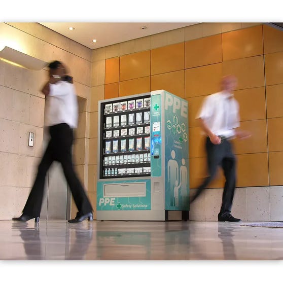 Crane Merchandising needed a complete brand package for a PPE (personal protection equipment) vending machine. Development needed to be prompt, given the broad and intense presence of Covid-19 and the likelihood that competing manufacturers were developing similar machines.